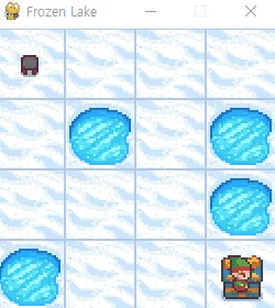 - frozen lake의 기본 맵은 4x4 혹은 8x8로 존재