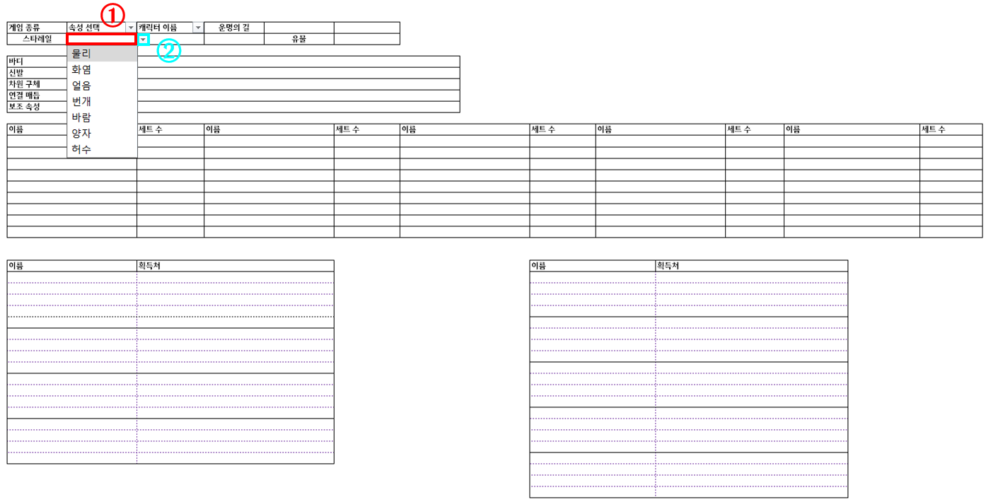 캐릭터의 유물, 차원 장신구 세팅은 엑셀 내 저장되어 있으며, 조회를 통해서 쉽게 보실 수 있습니다!