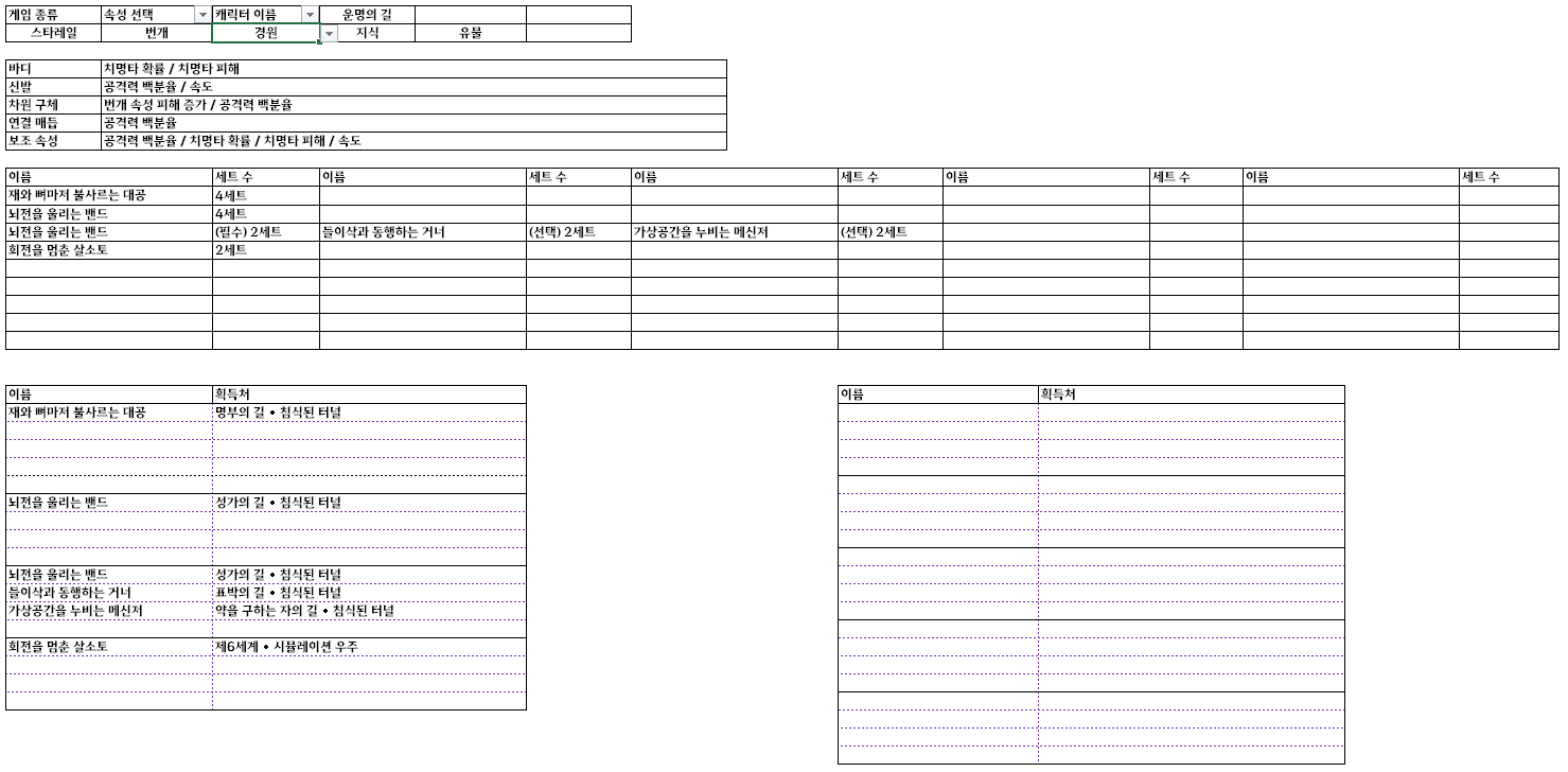 안녕하세요. 오늘은 제가 만든 스타레일 유물, 차원 장신구 세팅이 담긴 엑셀 파일을 사용하는 방법에 대해서 포스팅 하겠습니다. 스타레일도 원신과 비슷하게 유물과 차원 장신구를 세팅해주