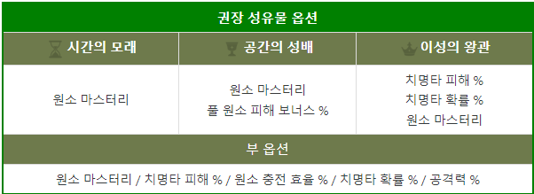 # 권장 성유물 옵션에서 필요한 정보가 들어있는 부분