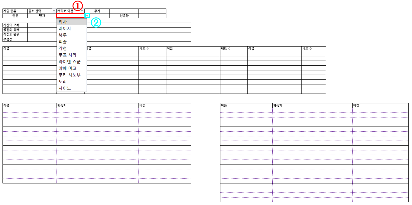 엑셀 파일을 두 개로 나눈 이유는 이후에 원신 캐릭터 성유물을 조회하는 엑셀 파일을 쉽게 만들기 위해서 입니다!
