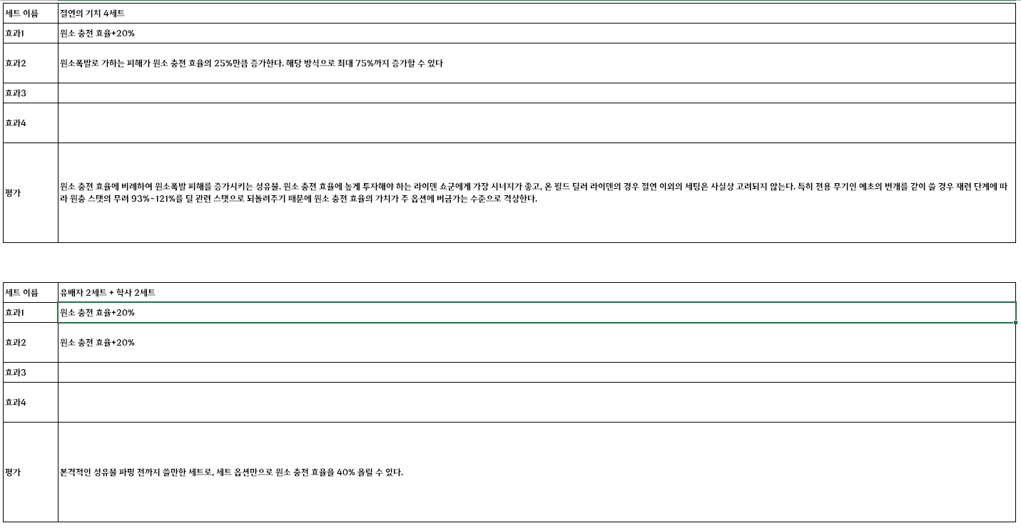 # 1세트 효과가 있는 4성 성유물은 생략한다.
