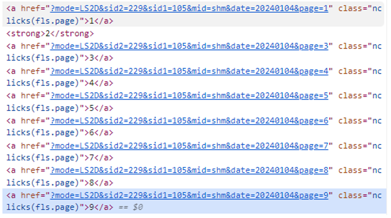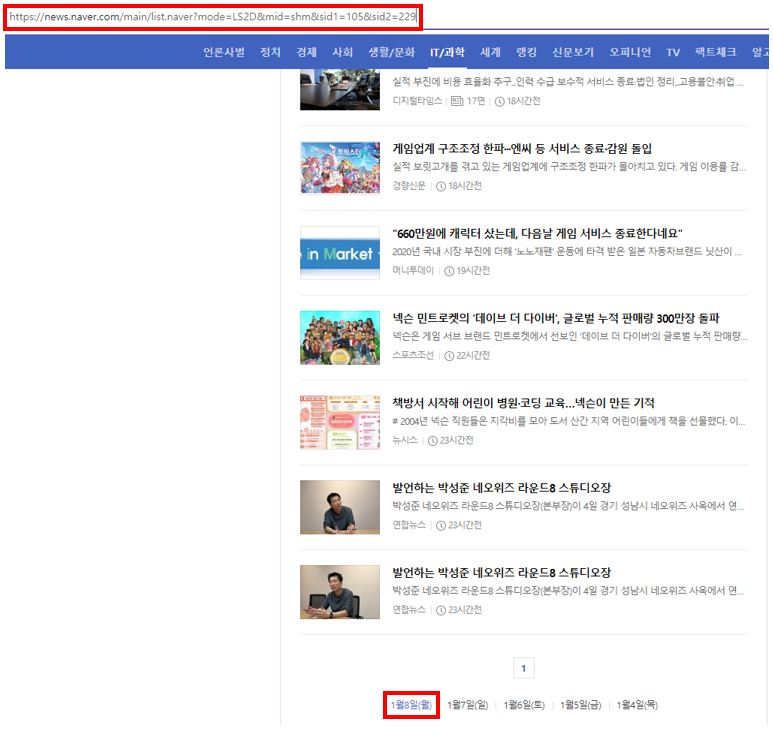 그렇기 때문에 특정 날짜의 기사들을 크롤링하고 싶다면 date 뒤에 연도+월+일을 붙이면 된다는 사실을 알 수 있습니다.