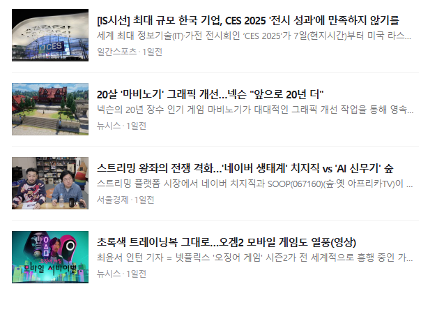 네이버 뉴스 게임/리뷰 카테고리 기사들의 사진