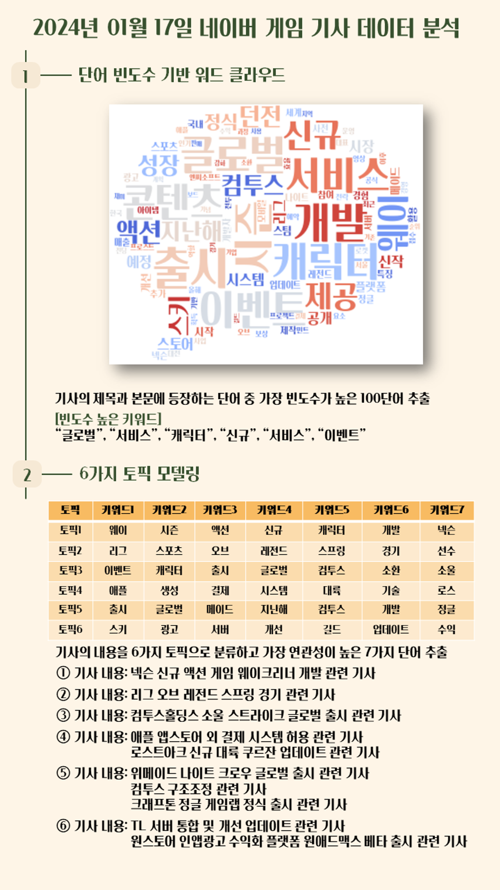 저는 2024년 01월 17일 네이버 게임/리뷰 카테고리의 기사 크롤링 데이터를 불러와 정제를 진행하도록 하겠습니다.