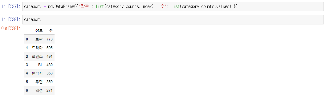 # 추출한 7개의 키워드를 데이터 프레임으로 변경한다.