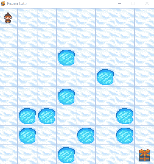 env = gym.make('FrozenLake-v1', desc=None, map_name=map_size, is_slippery=is_slippery)